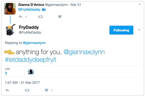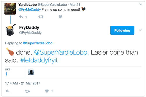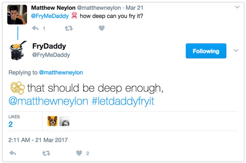 Tweet an emoji to @frymedaddy and he’ll tweet back a deep fried version.